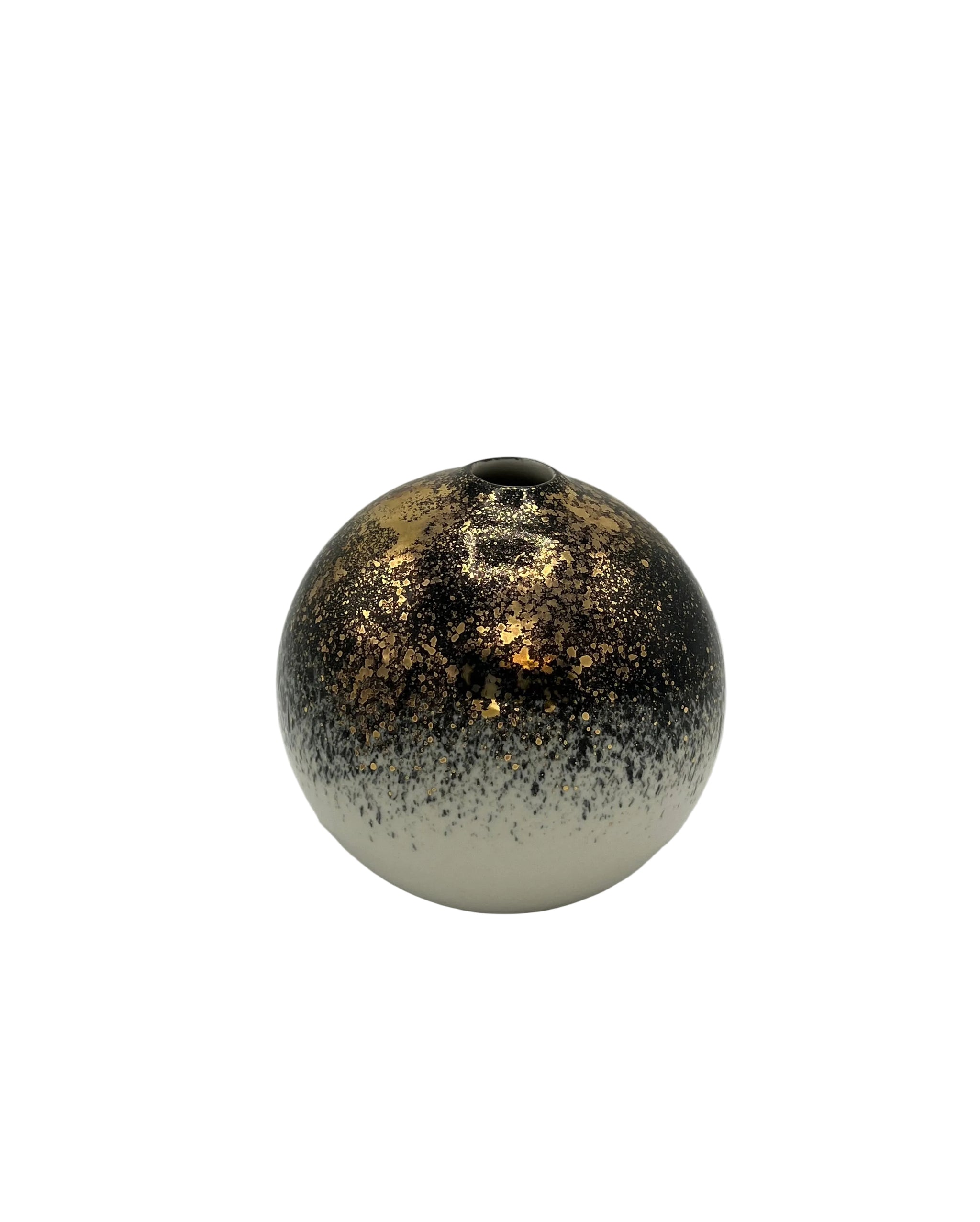 The Circus vase is designed to be a fun item, taking inspiration from the shapes found in the Circus.  It is a glam retro peacock green color. A sprinkle of real gold dust gives the vase its finishing touch.