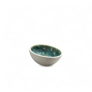 Outside is white unglazed porcelain mixed with ash from our famous Eyjafjallajökull, that last erupted in 2010 and on the inside is mix of glazes that create these beautiful colors and movements that remind us of the northern lights.