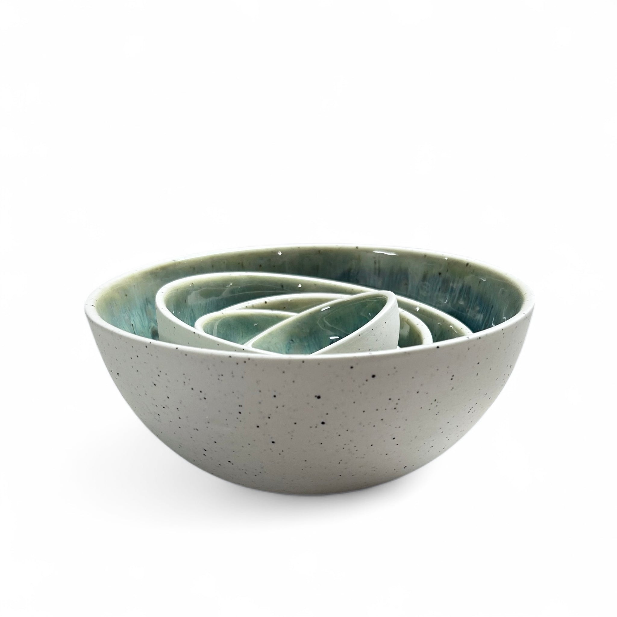 Aurora bowls are porcelain bowlswith green glazes inside