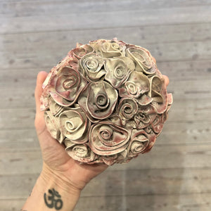 Handgerður rósa veggkúpull. Aftan á er gat svo auðvelt er að festa hann á vegg.