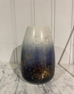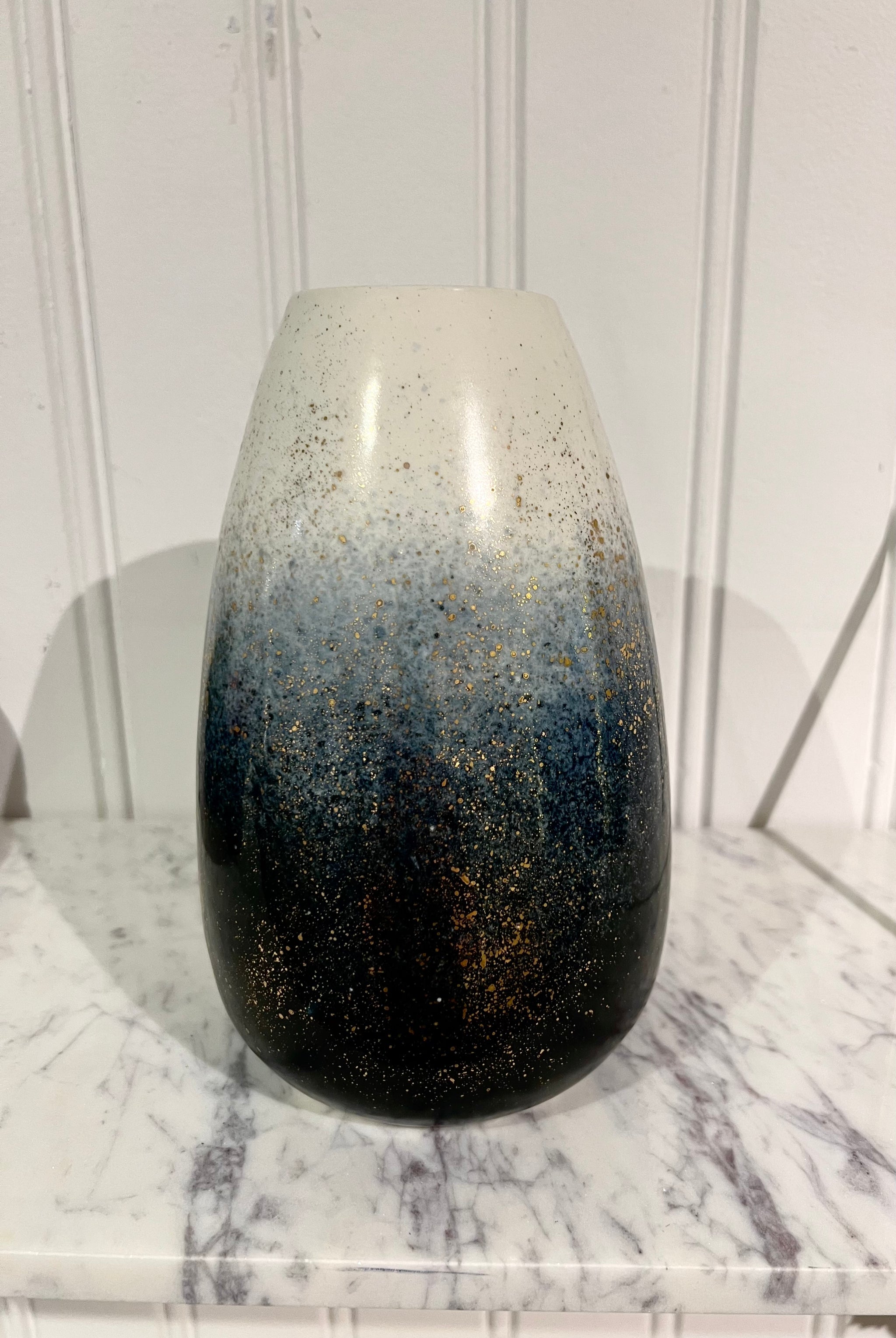 The Royal blue vase, shaped like a drop, will give your home a classy touch with its rich and beautiful Royal blue color. It has gradual blue and black droplets on the outside and is completely white on the inside.